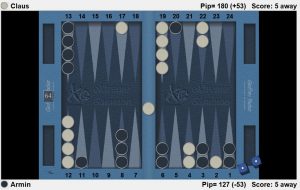 Im ersten Spiel des 5 Punkte Matches ist Claus gegen Armin bereits in der Eröffnung stark unter Druck geraten und Armin zückt den Dopplerwürfel… Claus liegt mit den...